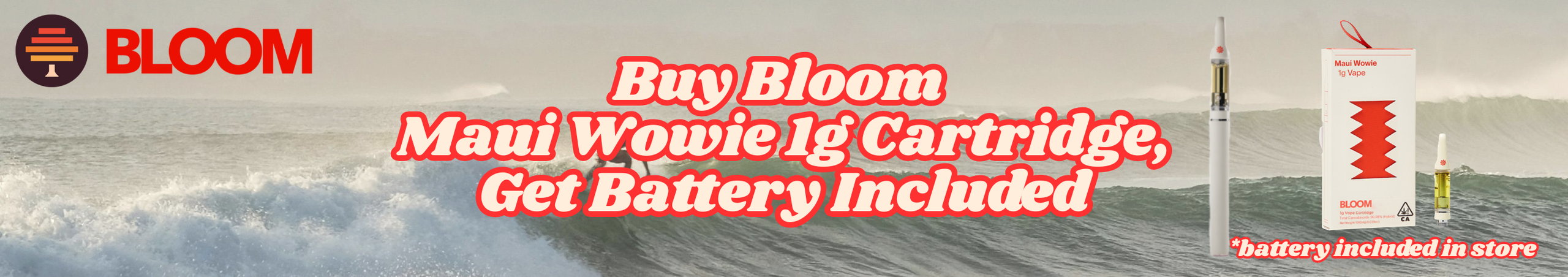 Buy 1 Bloom-Maui Wowie 1g Cartridge, Get Boom Battery Included. Vape battery to be included in store.