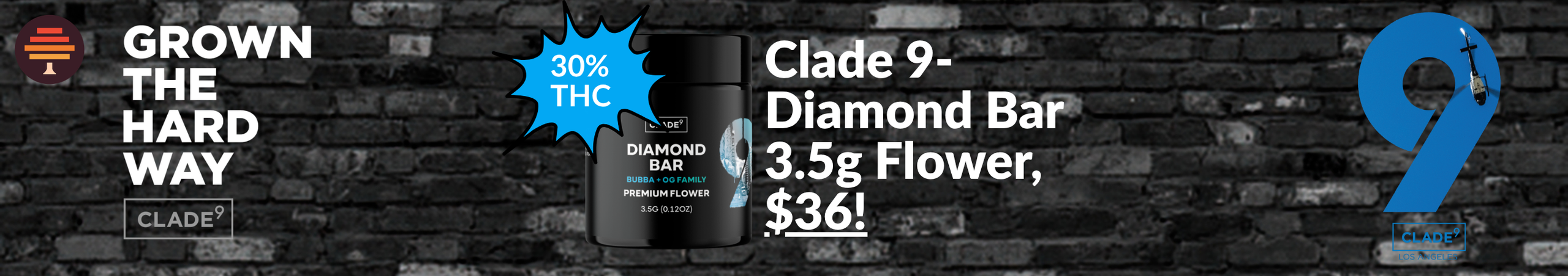 Clade 9- Diamond Bar 3.5g Flower, $36