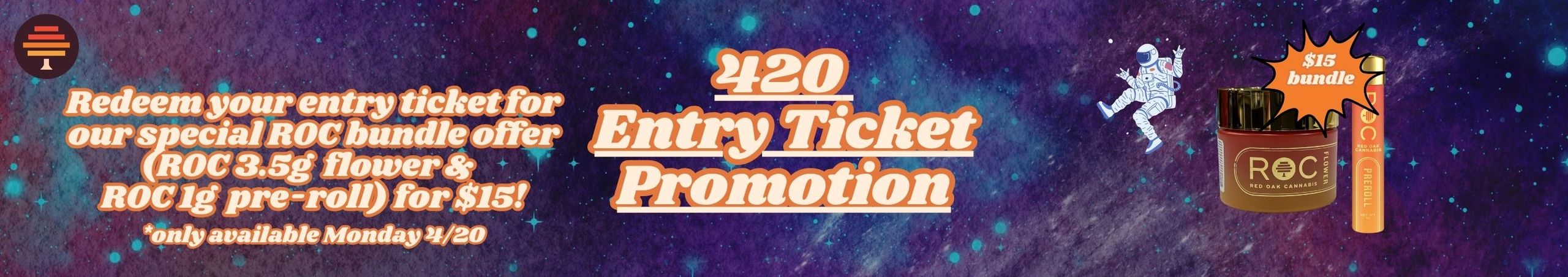 Redeem your 420 entry ticket for the ROC 3.5g & ROC 1g Pre-Roll for $15. Limited once per customer