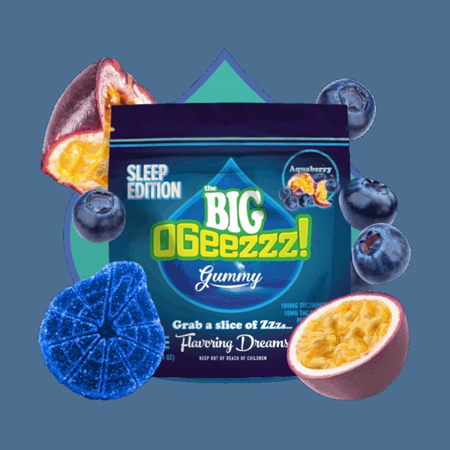 This Big OGeezzz! is a mega version of our Sleep Edition gummy. Crafted with our signature blend of THC and CBN, this delicious Aquaberry gummy – a blend of passion fruit and berries – offers a dreamy experience with BIG flavor. The difference is that it is perforated into 10 slices — each 10 milligrams for a total of 100 milligrams.