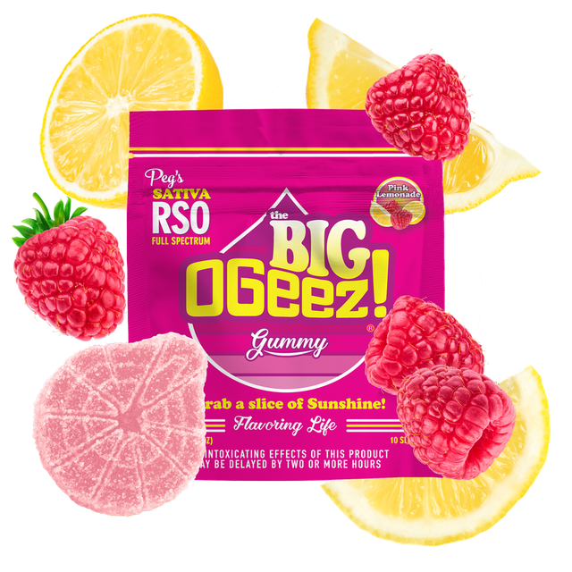 Meet Peg’s Big Sativa RSO! This dynamic Big OGeez! gummy is crafted with rich fullspectrum RSO and the uplifting terpenes of the iconic sativa Maui Wowie strain. Bursting with Pink Lemonade flavor, this gummy offers a bright mood-boosting, daytime-friendly experience combined with the balanced, therapeutic benefits of RSO. It’s sure to deliver feel good relief in every bite!