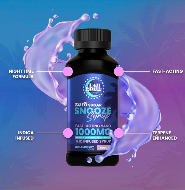 Dreamberry Snooze Syrup is a delicious nighttime formula that carefully blends THC, CBN, and CBD in a calming ratio designed for deep, consistent sleep. A juicy blend of blueberries, blackberries, and raspberries that's sweet, a little tart, and easy to sip. Like your favorite late-night snack, just more chill.